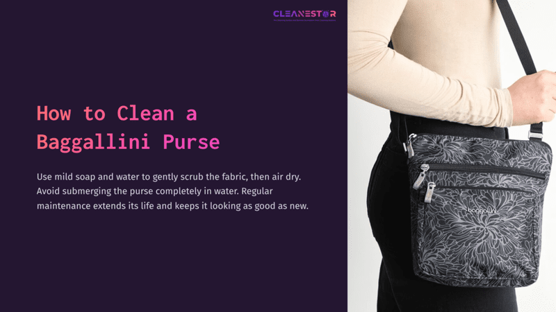 To clean a Baggallini purse, use mild soap and water to gently scrub the fabric, then air dry. Avoid submerging the purse completely in water.