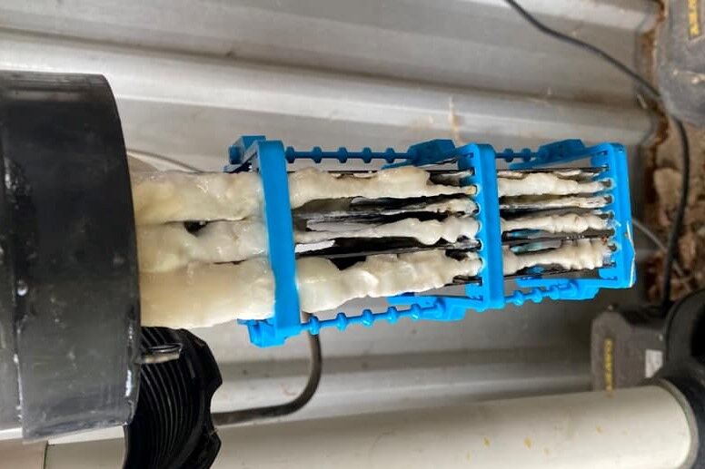 - Look for any scaling on the cell plates. Scaling is a common issue caused by the accumulation of minerals from the salt that can hinder the cellโs performance. If you notice scaling, you will need to clean it off thoroughly during the next step.