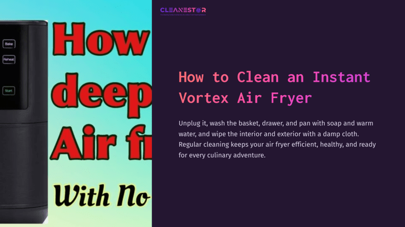 To clean an Instant Vortex Air Fryer, unplug it and wash the basket, drawer, and pan with soap and warm water. Use a damp cloth to wipe the interior and exterior.