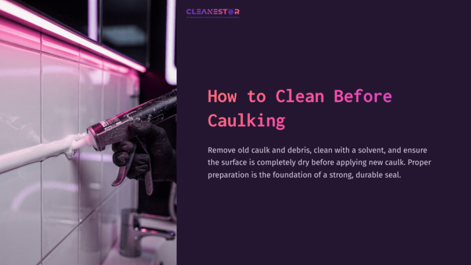 Before caulking, clean the surface with soap and water, remove old caulk and residue, and ensure the area is dry and free of dust or grease. Use alcohol for a final wipe to remove any remaining impurities.