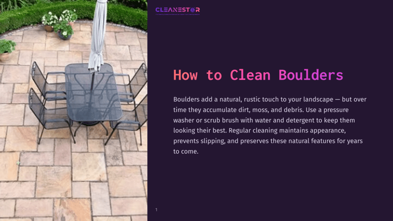 To clean boulders, use a pressure washer or scrub brush with water and detergent. Boulders add a natural and rustic touch to your landscape, but over time they can accumulate dirt, moss, or other debris.
