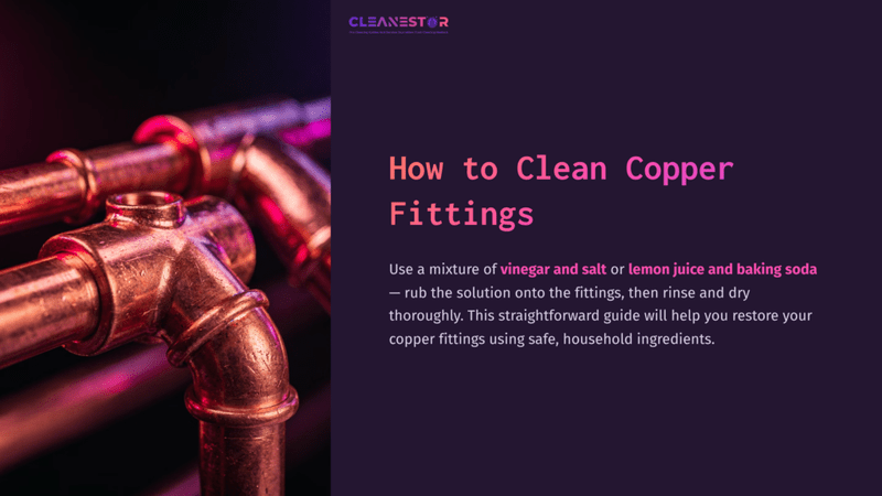 To clean copper fittings, use a mixture of vinegar and salt or lemon juice and baking soda. Rub the solution onto the fittings, then rinse and dry them thoroughly.