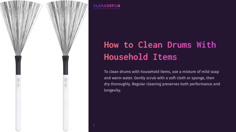 To clean drums with household items, you can use a mixture of mild soap and warm water. Gently scrub the drums with a soft cloth or sponge, then dry them thoroughly.