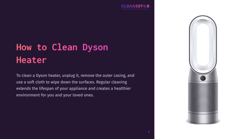 To clean your Dyson heater, start by unplugging it and letting it cool down. Use a soft, damp cloth to wipe the surface. For the vents, use a soft brush or vacuum with a brush attachment. Avoid using water near the heaterโs electrical components.