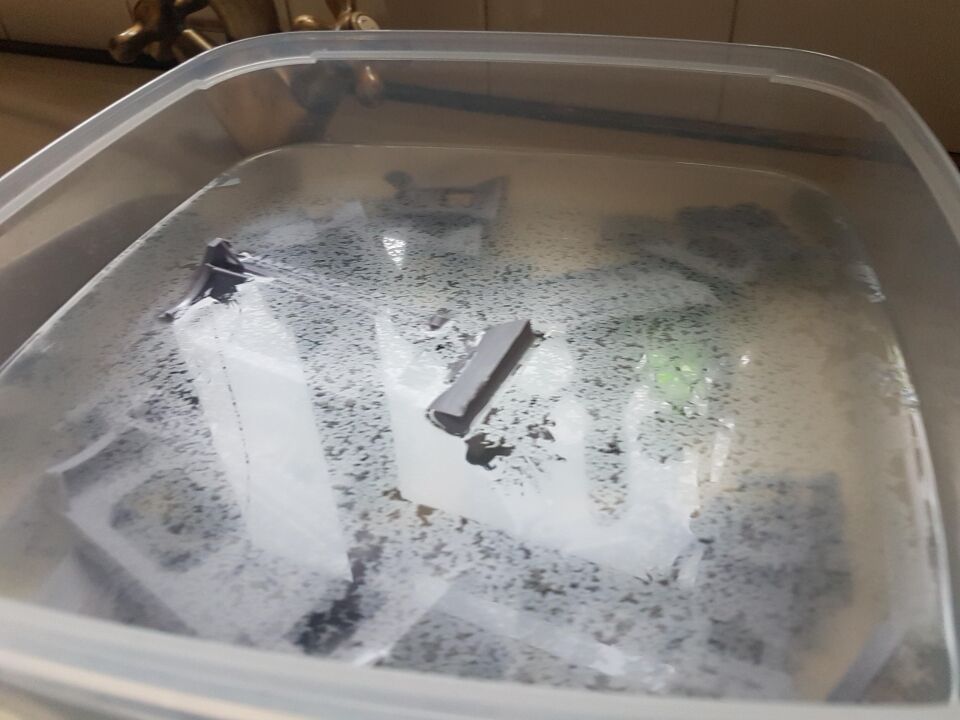 - Place the resin models into the soapy water, making sure they are fully submerged.