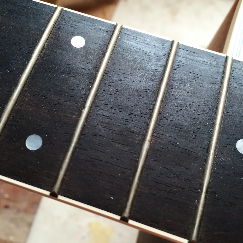 - Check for any signs of wear or corrosion on the fret wire. This can include discoloration, rust, or pitting. If you notice significant damage, it may be necessary to replace the affected frets.