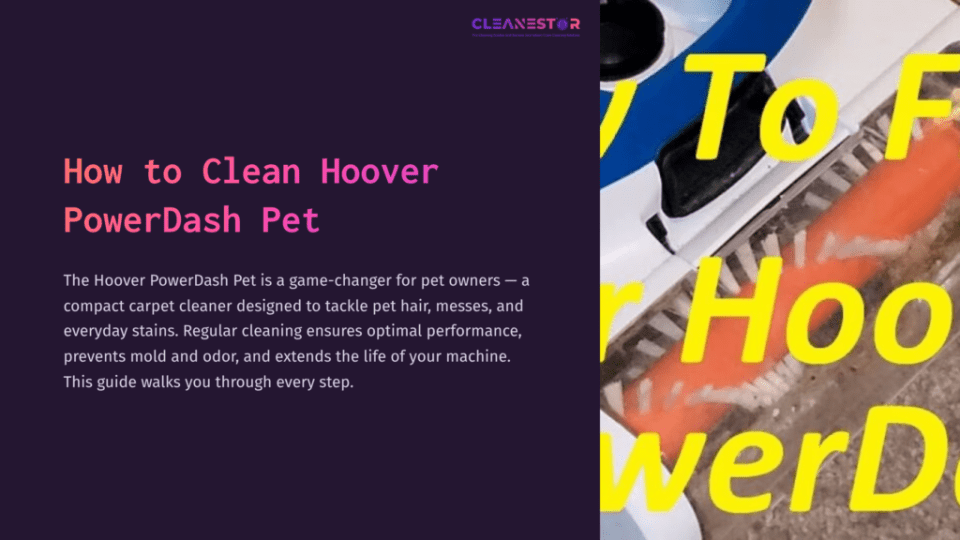 To clean the Hoover PowerDash Pet, first, remove the dirty water tank and empty it. Next, rinse the tank and nozzle, and clean the filter under running water.