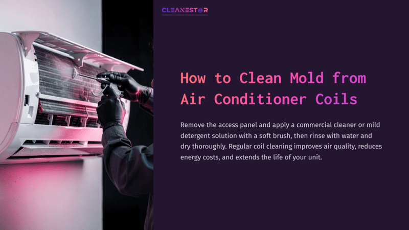 To clean mold from air conditioner coils, remove the access panel and use a commercial cleaner or a mild detergent solution. Apply the solution with a soft brush, then rinse with water and dry thoroughly.
