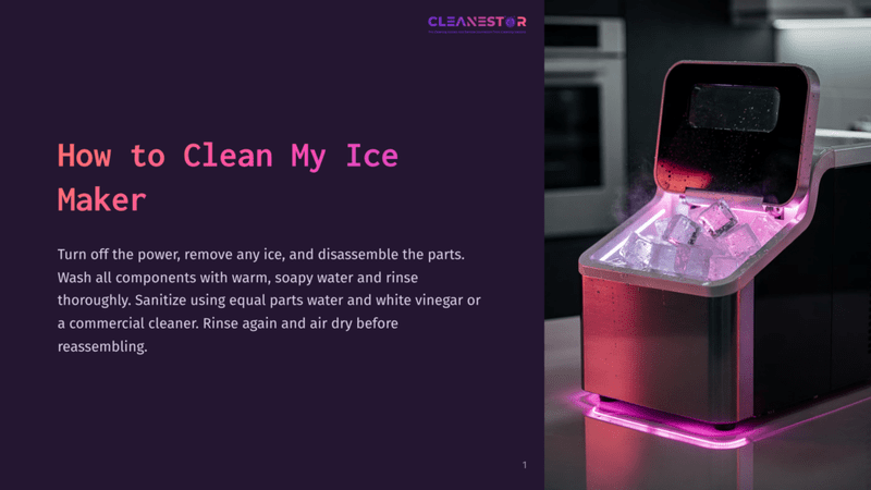 To clean your ice maker, first turn off the power, remove any ice, and disassemble the parts. Then, wash all components with warm, soapy water and rinse thoroughly. Finally, sanitize the unit using a solution of equal parts water and white vinegar or a commercial ice maker cleaner. Rinse again and allow the parts to air dry before reassembling and powering back on.