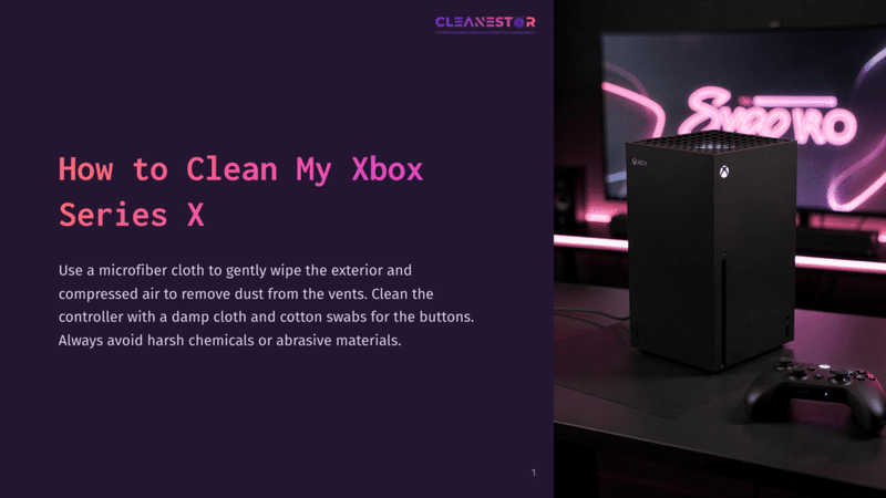 To clean your Xbox Series X, start by unplugging it and using a soft, dry cloth to wipe the exterior. Use compressed air to remove dust from the vents and ports. Avoid using liquid cleaners or abrasive materials. Reconnect the console and enjoy gaming!