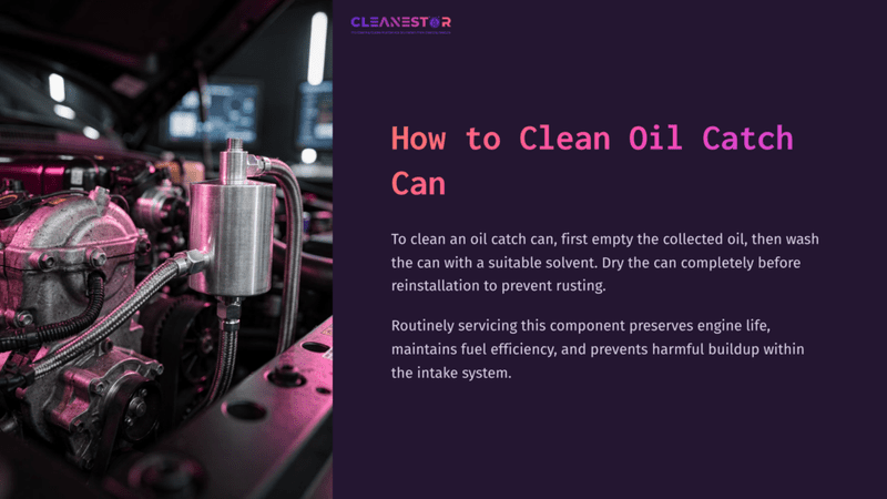 Step-By-Step Guide On Cleaning An Oil Catch Can, Featuring Purple Background, White Text, And Numbered Instructions.