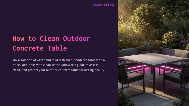To clean an outdoor concrete table, mix a solution of water and mild dish soap, scrub the table with a brush, and rinse with clean water.