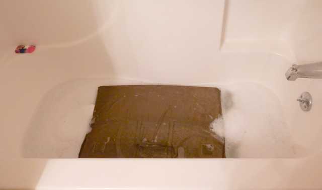 - In a large basin or bathtub, create a solution using a mild detergent and warm water.
