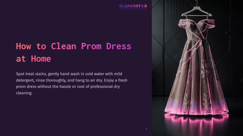 To clean a prom dress at home, follow these steps: spot treat any stains, gently hand wash the dress in cold water with a mild detergent, rinse thoroughly, and hang it to air dry. Now you can enjoy a clean and fresh prom dress without the hassle of dry cleaning or professional services.