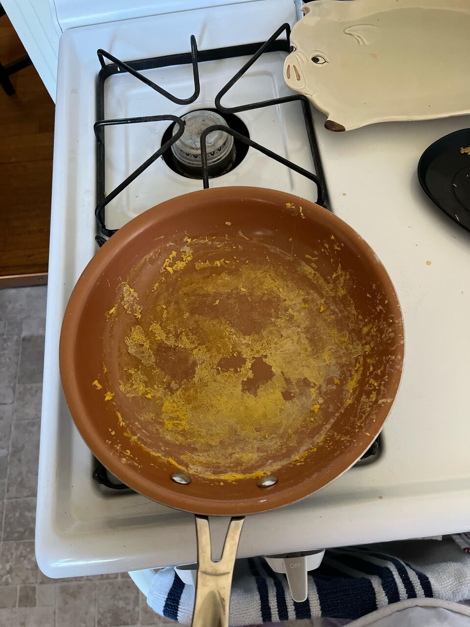 - Return to find the remaining egg bits softened and ready to wipe out.