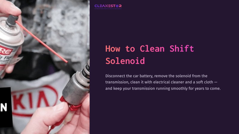 To clean a shift solenoid, disconnect the car battery and remove the solenoid from the transmission. Clean the solenoid with electrical cleaner and a soft cloth, ensuring not to damage any wires.