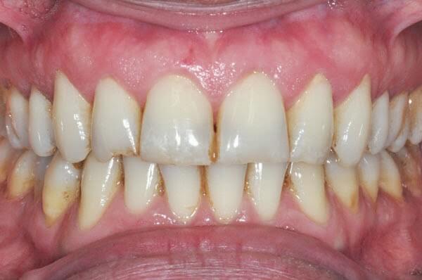 - Enamel erosion: If the protective enamel on the teeth becomes eroded, the teeth may appear yellow or brown, especially in the gaps between teeth.