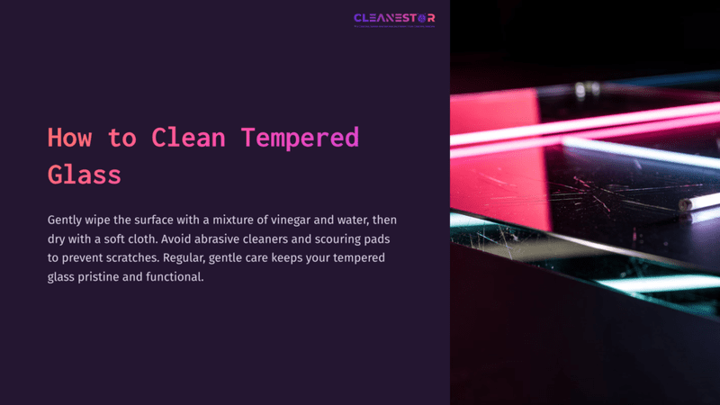 To clean tempered glass, gently wipe the surface with a mixture of vinegar and water, then dry with a soft cloth. Avoid abrasive cleaners and scouring pads to prevent scratches.