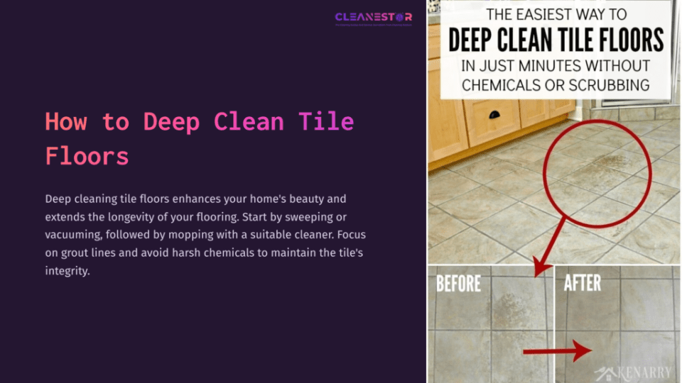 To deep clean tile floors, start by sweeping or vacuuming, followed by mopping with a suitable cleaner. Focus on grout lines and avoid harsh chemicals to maintain the tileโs integrity.