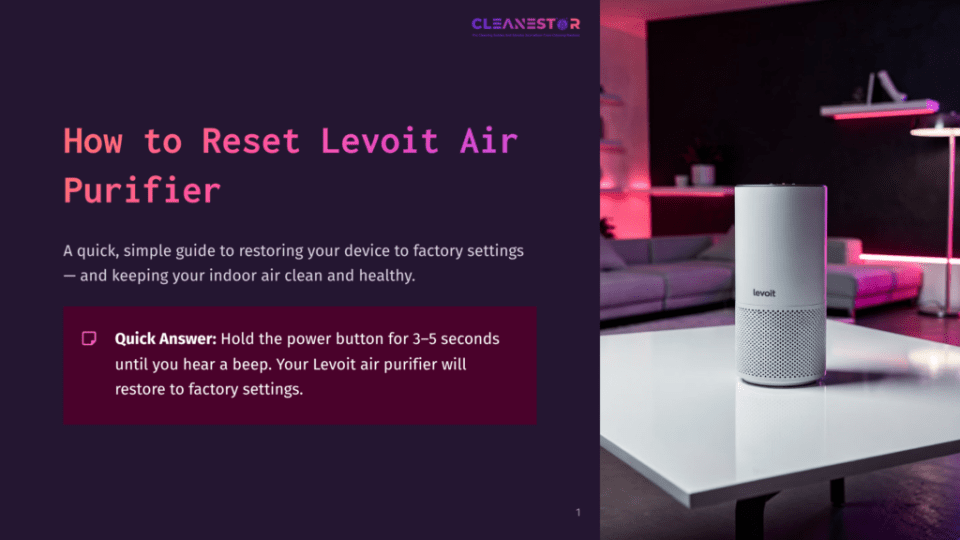 To reset a Levoit air purifier, hold the power button for 3-5 seconds until you hear a beep. This simple action will restore factory settings.