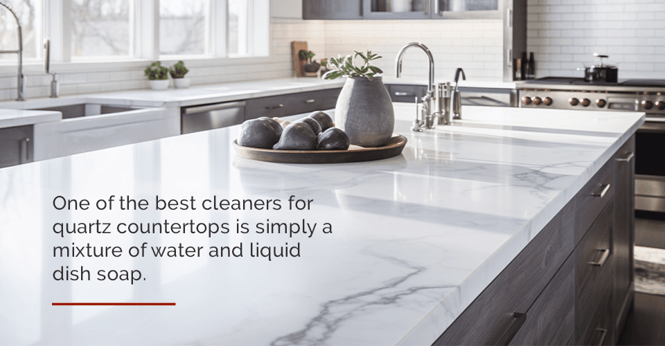A mild dish soap mixed with warm water is the best cleaner for quartz countertops. Avoid abrasive cleaners and harsh chemicals.